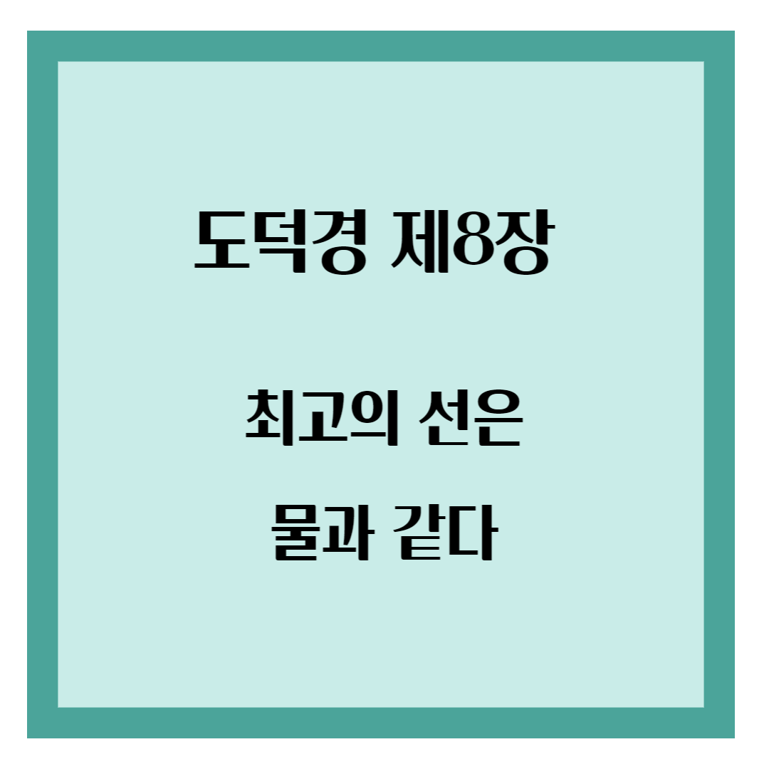 도덕경 8장은 '상선약수'라는 구절로 유명합니다. 이 구절은 물의 특성이 가장 이상적인 사람의 특성과 유사하다는 것을 설명하기 위해 사용됩니다. 물은 유연하고 적응력이 있으며, 항상 가장 낮은 곳을 찾습니다. 또한 늘 충만하고 풍요롭지만 결코 과시하지 않습니다.