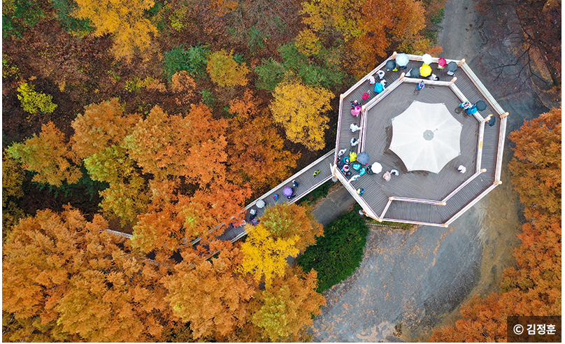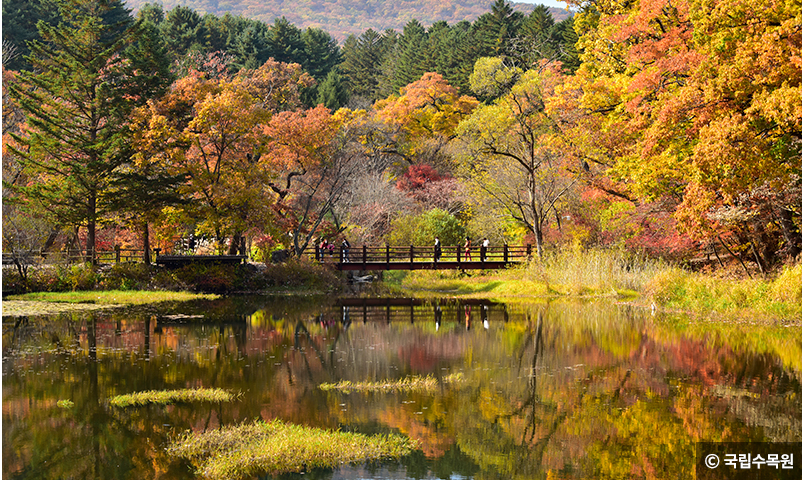 포천 국립수목원은 동쪽에는 운악산, 서쪽에는 용암산을 두고 그 사이에 자리하고 있습니다. 하루에 전체를 모두 둘러보기 어려울 만큼 넓습니다. 가을 풍경을 즐기기에는 숲생태 관찰로와 휴게광장, 육림호 주변, 전나무숲길 등 수목원의 남쪽 산책로가 좋습니다.