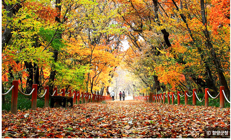함양에는 우리나라에서 가장 오래된 인공숲인 함양 상림이 있습니다. 함양 읍내에 위치한 이 인공숲은 숲의 초입으로 들어서자마자 천 년을 이어온 나무들의 깊은 정기가 느껴집니다. 통일 신라 시대 최치원이 함양태수로 있을 대 홍수를 막기 위해 둑을 쌓고 그 둑을 따라 촘촘하게 나무를 심었다고 합니다. 지금은 활엽수 120여 종, 2만여 그루의 나무가 울창하게 우거져 있습니다. 숲으로 들어서는 곳에 함화루가 있고 함양 최치원 신도비도 볼 수 있습니다. 숲 주변에는 공연 무대와 음악분수, 함양의 특산물인 산삼을 주제로 한 지역특산물 전시관도 있습니다.