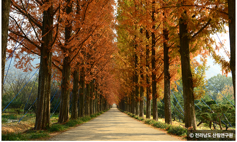 전라남도산림연구원 내에는 '빛가람 치유의 숲'이 조성되어 있습니다. 이 숲은 연구 목적으로 만든 시험림으로 현재 방문객들에게 무료로 개방하고 있습니다. 무려 1쳔여 종에 달하는 식물이 자라고 있어 계절의 변화를 느끼기에 안성맞춤인 곳입니다. 연구원은 이곳의 산림자원을 활용하여 산림치유센터를 운영하고 있습니다. 각종 건강 측정 장비, 아로마 테라피 등을 활용하여 개인별 맞춤형 산림 치유 프로그램을 제공하고 있으며 1인당 1만 원의 저렴한 비용으로 이용하실 수 있습니다.