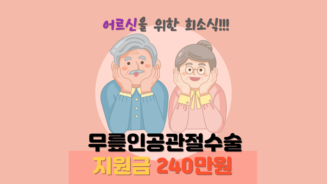 2022년 기준 우리나라의 평균 기대수명은 82.7세입니다. 의료 기술의 발전 등으로 평균 수명은 매년 늘어나고 있는데요. 기대수명이 높아지는 것도 좋지만 무엇보다 중요한 것은 노년을 건강하게 보내는 것이 아닐까요? 기대수명이 높아졌다고 각종 노인성 질환에서 자유로워질 수는 없을 테니까요. 그래서 이번 포스트에서는 어르신들의 삶의 질을 높일 수 있는 좋은 지원정책이 있어서 소개하려고 합니다. 바로 취약계층노인을 대상으로 무릎인공관절수술비를 지원해 주는 정책입니다. 지원 대상과 신청방법 등에 대해서 자세히 알아보겠습니다.