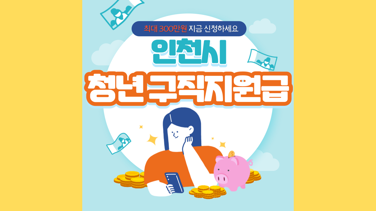 요즘 청년들의 생활 안정을 지원하는 다양한 지원 정책들이 많이 나오고 있습니다. 국가 차원에서 뿐만 아니라 여러 지자체에서도 다양하게 청년 지원 정책을 발표하고 있는데요. 이번에 소개해드릴 지원정책은 인천시의 구직활동 지원금입니다. 지원 자격, 신청방법 등 확인하시고 최대 300만 원까지 지원금을 받을 수 있는 기회를 꼭 잡으세요.