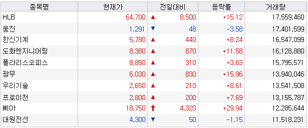 거래량 천만주 이상 종목 및 이슈 정리
