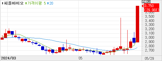 혈액 기반 진단 기업 피플바이오가 자사 알츠하이머병 혈액검사 제품의 글로벌 진출 순항 기대감에 상한가를 기록했다. 29일 오전 10시20분 현재 피플바이오는 전일 대비 865원(29.98%) 오른 3750원에