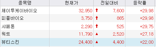 | [2024.5.30.]상한가, 거래량 천만주 이상 종목 정리 (0) | 2024.05.31 |