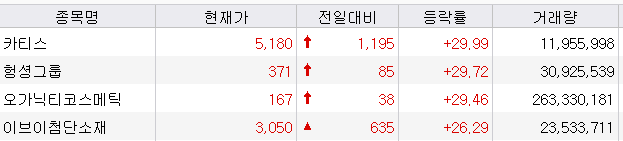상한가 급등주 종목 및 이슈 정리