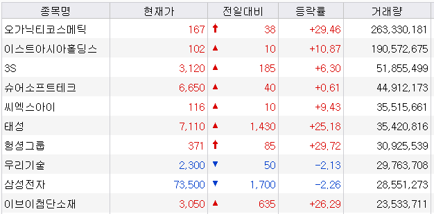 거래량 천만 주 종목 및 이슈 정리