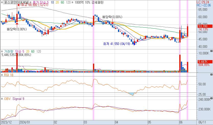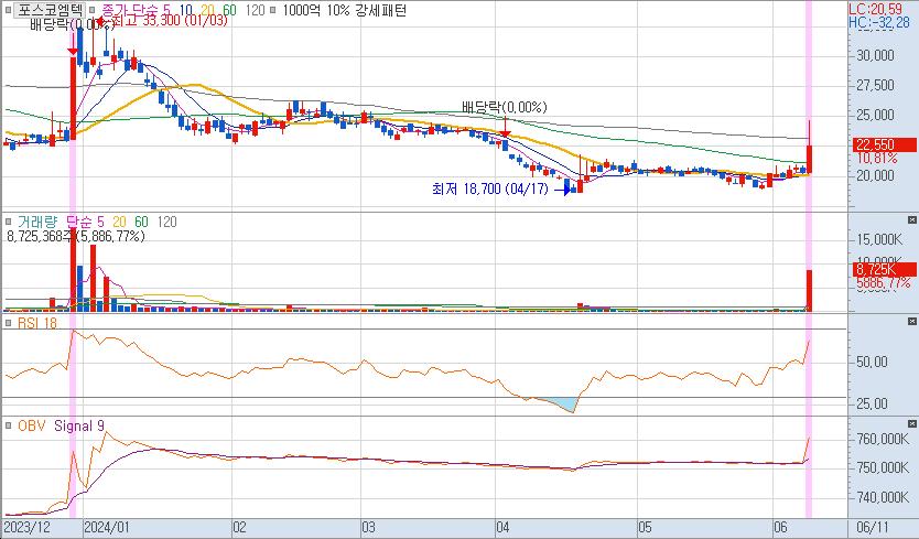 리튬 테마 상승. 포스코 회장 윤대통령 순방 경제사절단 첫 동행 소식에 급등.