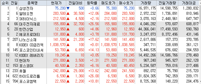 거래대금 상위 종목 정리
