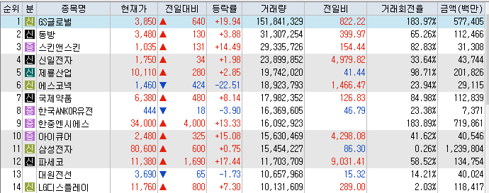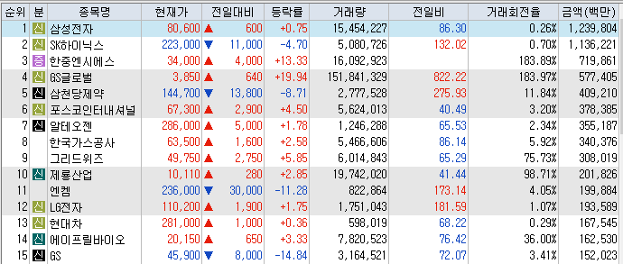 거래대금 상위 종목.