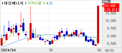 대성에너지(+29.91%) 1 尹 대통령, "동해에 140억 배럴 규모 석유·가스 매장 가능성" 발언 속 에너지 관련주로 부각되며 상한가