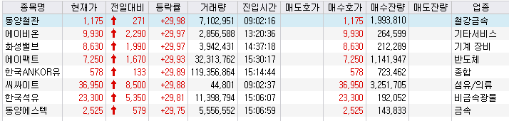 상한가 급등주 종목 및 이슈 정리