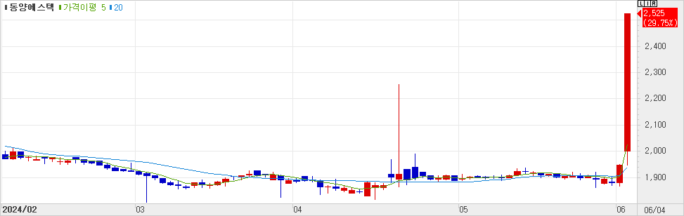 [조세금융신문] 동양에스텍, 주가와 거래량 동반 상승... 주가 +5.86% ↑