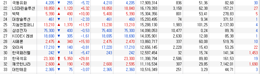 거래량 천만 주 이상 종목 정리