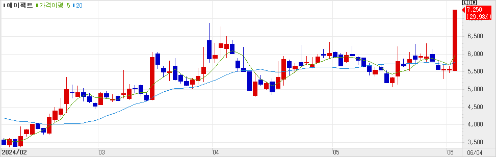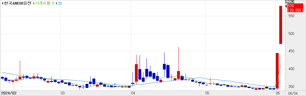 6/3 정부발표 이후 상한가. 실제 생산 가능여부, 채산성 가능여부는 아직 미지수.