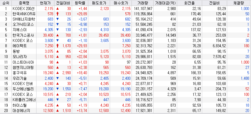 - 상한가, 거래량 천만주 이상 종목 정리